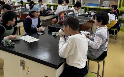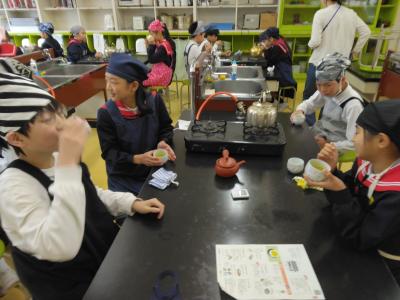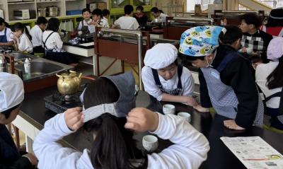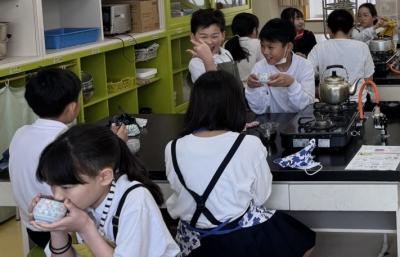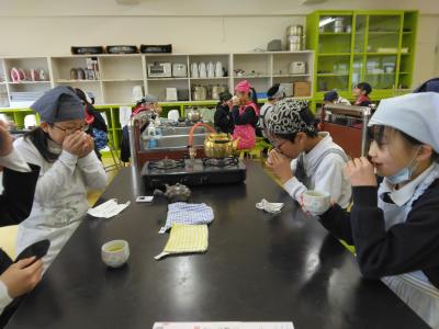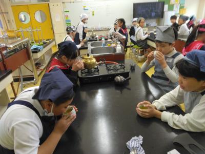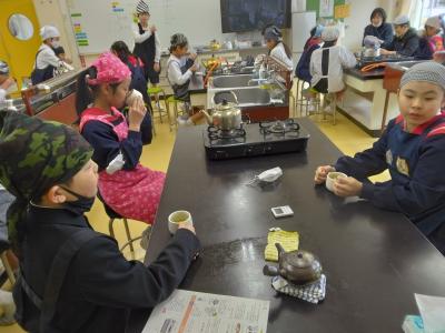 5年生、始まったばかりの家庭科の授業で、早速お茶入れに挑戦しました。