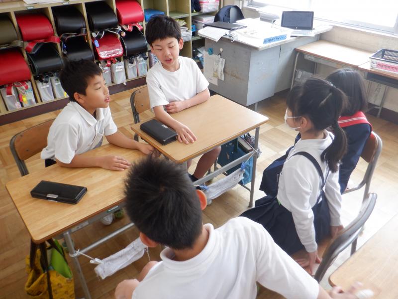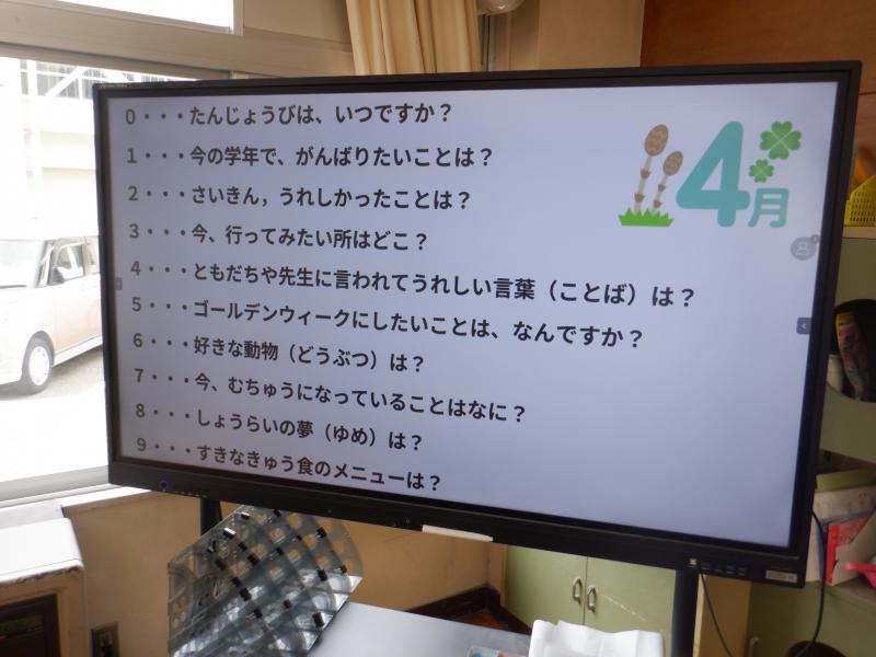月曜日は,新しいクラスになって初めてのアドジャン。子供たちは,各テーマについて自分のことを話したり,友達の話を共感しながら聞いたりして,笑顔で気持ちよく活動していました。