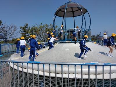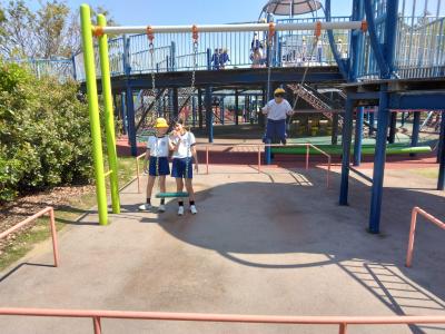 七塚中央公園では遊具で遊んだり、実行委員さんの進行で5,6年生の遊びをしたりしました。