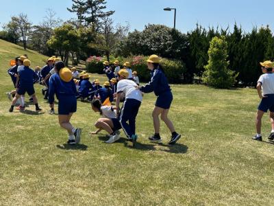 お昼を食べてから、木津公園に移動し、実行委員さんを中心に学年遊びをしました。