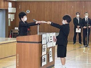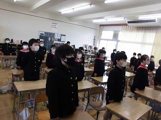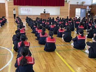 生徒指導からは、安全に気を付け、規則正しく生活し、来年度よいスタートができる準備をしてほしいと、春休みの過ごし方について話がありました。