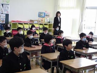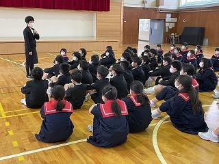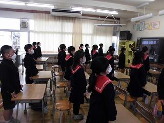 3月24日(金)3限目に、3~5年生が体育館に集合し、1・2年生はリモートで修了式を行いました。会場は別でしたが、全校児童で元気に校歌を歌い、式が始まりました。