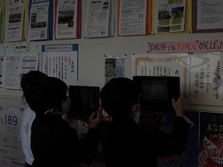 総合の学習で「中条小の歴史」について調べている3年生。3月13日(月)は、パソコンサポーターが来校する日なので、記事を集め、調べたことを整理する学習に取り組んでいました。子ども達は、中条小学校の伝統についてインターネットで調べたり、学校の賞状やトロフィーを写真に撮ったりしながら、改めて自分たちの学校のよさを感じていました。