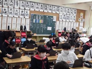 3月13日(月)4年生が、PCサポーターに教えてもらいながら、スクラッチでゲームを作っていました。子ども達は、自分の思い描いたゲームにしようと、どの子も進んでプログラミング操作に取り組んでいました。