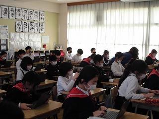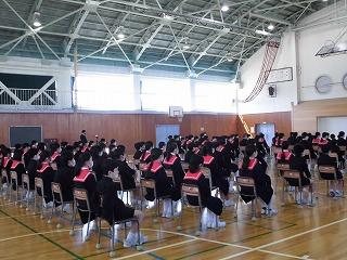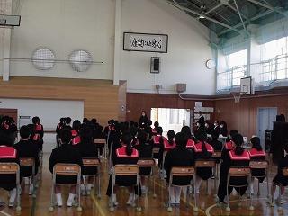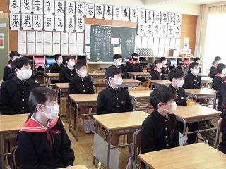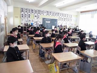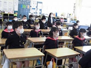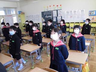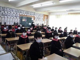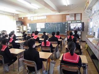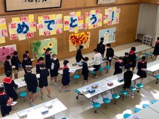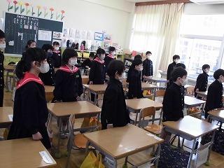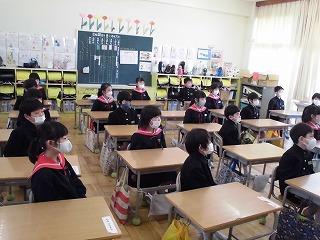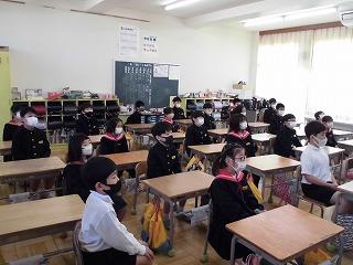 コロナ感染防止のため、当日は5・6年生のみの参加となるので、1~4年生にとっては、予行練習が本番でした。どの学年の子ども達も、背筋を伸ばし、6年生が卒業証書を授与する姿をしっかりと見ていました。教室でリモートでの参加となりましたが、礼儀を持って臨んでいる姿がとても素敵でした。