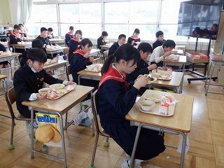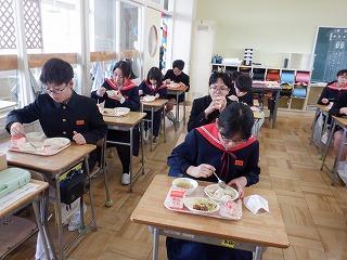 6年生は、このメンバーでの最後の給食を名残惜しそうにしながらも、一つ一つおいしそうに味わって食べていました。