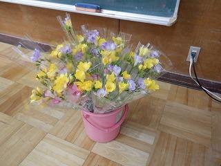 お祝いのエアリーフローラの花も届き、一人ずつ受け取っていました。