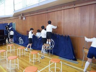 短い時間の活動でしたが、行動力のある5年生の力で、立派な卒業式会場ができあがりました。5年生の皆さん、本当にありがとう。明日の卒業式を気持ちよく迎えることができます!