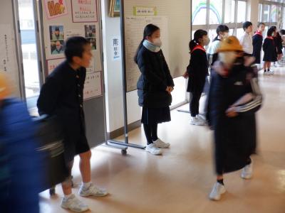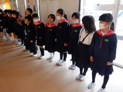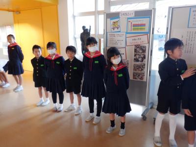 特に、2年生はたくさんの参加があり、児童玄関前の廊下いっぱいに、