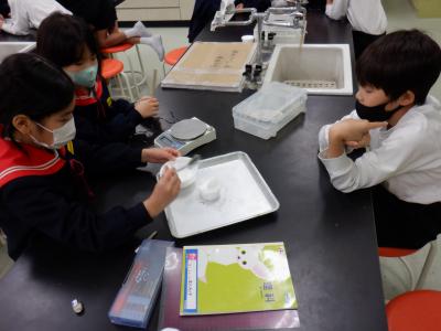 3年生が、理科「物の重さをくらべよう」の学習をしています。