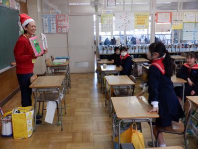 クリスマスが近いこともあり、ボランティアの皆さんはサンタの帽子をかぶって、本を読んでくださいました。