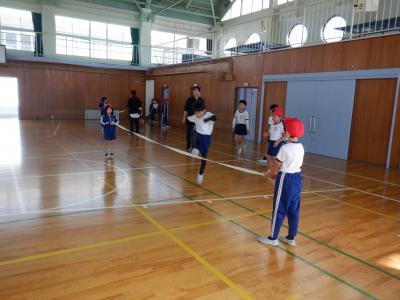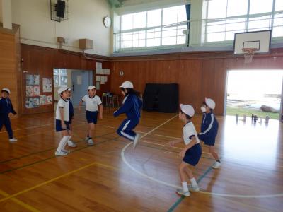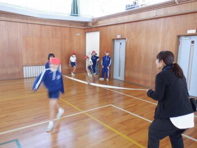 1組はゴム跳び、2組は大繩で8の字に挑戦していました。