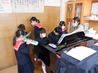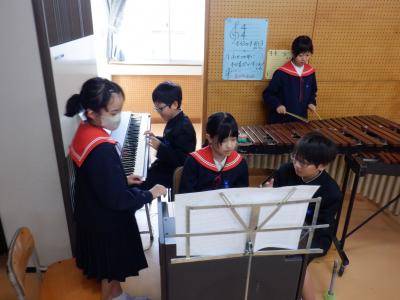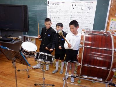 2組は音楽で、合奏の練習をしました。