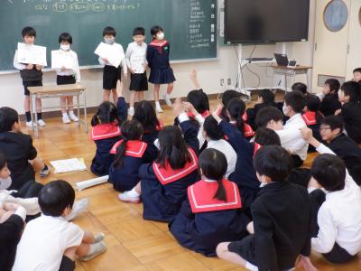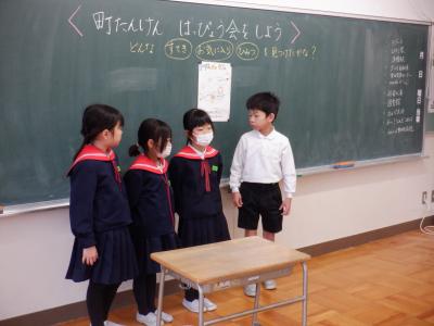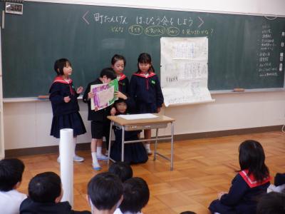15日(金)、2年生は、2学期の中心的な学習である「町探検」で調べたことを発表し合いました。