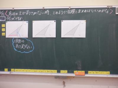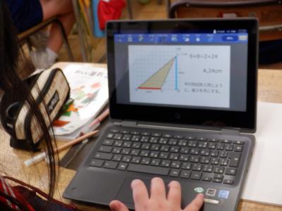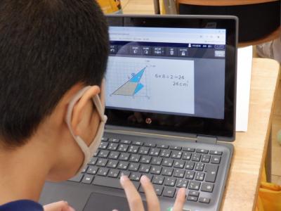 三角形の面積の求め方を学習しています。クロームブックを用いて、まずは自力解決です。