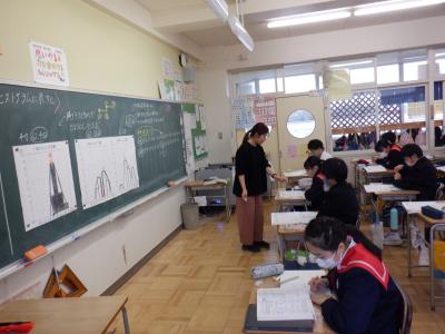 6年生は、2組が算数、1組が家庭の学習です。