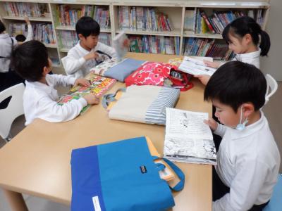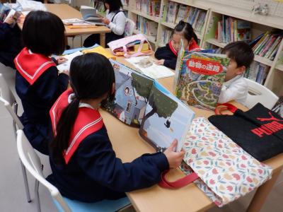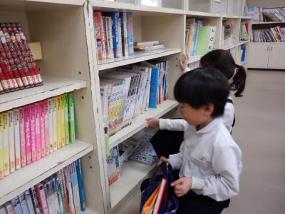 「どれにしようかな・・・」と、1年生が3冊の本を選んでいました。