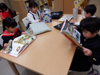 借りたい本が決まった子は、早速読みたくて、全員の貸し出しが終わるまで図書室で読み始めました。