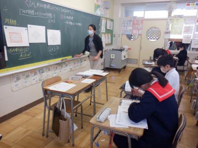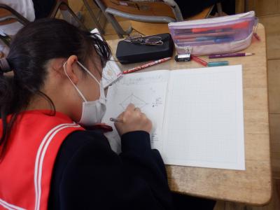 2023年12月22日 17時55分5年2組の算数では、ひしがたの面積の求め方を学習しています。