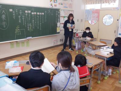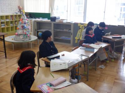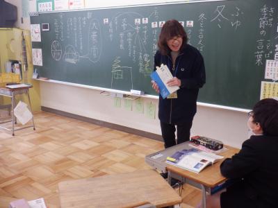 「冬といえば」をテーマに言葉を出し合い、難しい言葉出たときには、その意味を想像しながら学習ました。