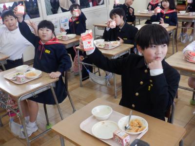 ちょうど、24日、25日が誕生日だった子がいるクラスでは、牛乳で「おめでとう」の乾杯も。