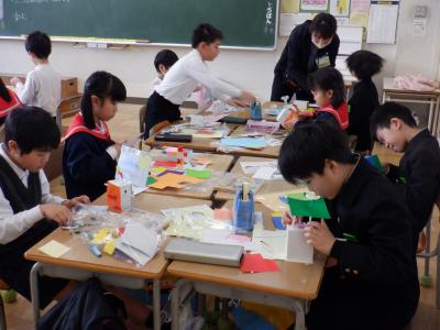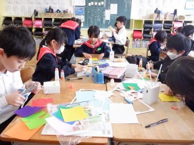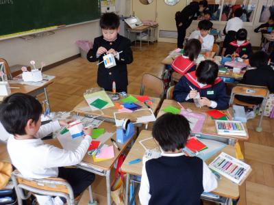 2024年1月22日 19時10分1組は、図工「パタパタ ストロー」の作品づくりをしています。