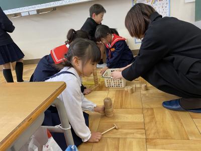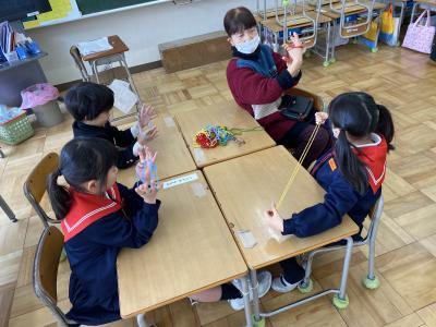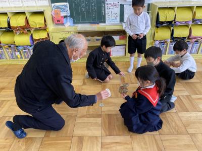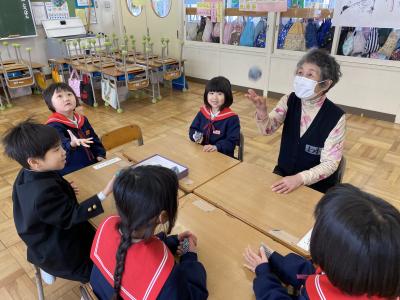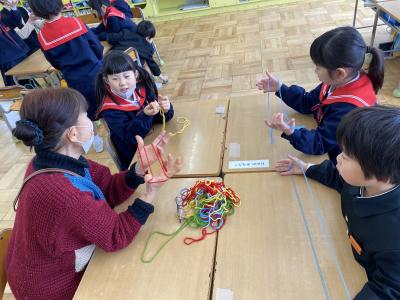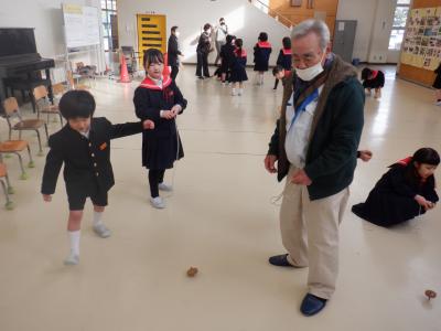 2024年1月25日 18時25分25日(木)、1年生は地域の方々や保護者をGTにお迎えして、昔遊びの会を行いました。