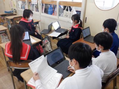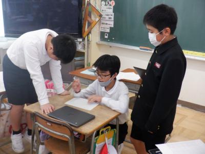 5年教室では、司会担当が原稿を作成したり、幕間担当が内容を考えたり、協力して準備をしていました。