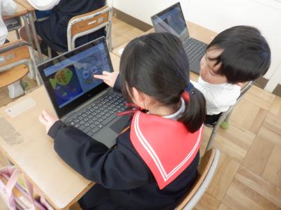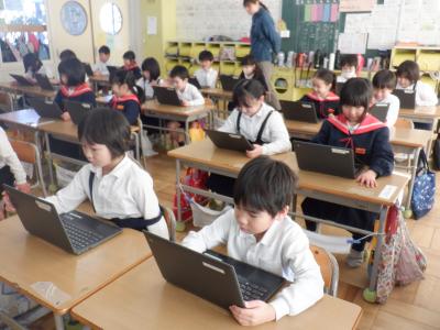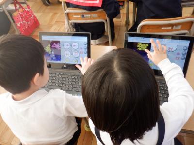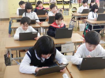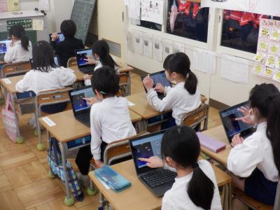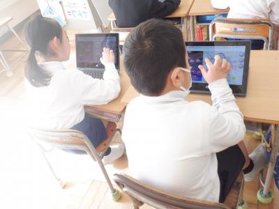 どちらのクラスの子どもたちも、タブレットの操作には十分に慣れてきたようです。