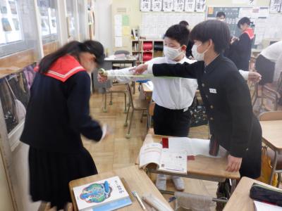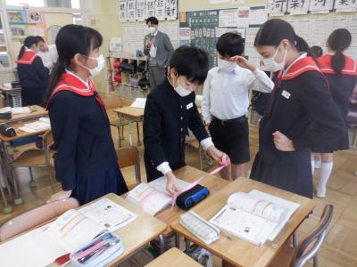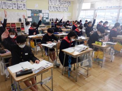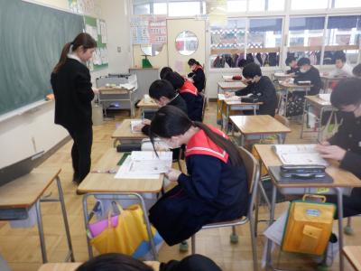 3限目に、津幡南中学校の先生が、6年生の授業の様子を参観にいらっしゃいました。