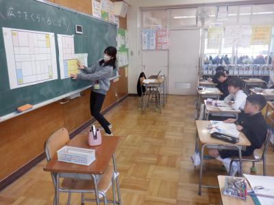 4年生は、算数で「広さの表し方を考えよう」(面積)の学習をしています。