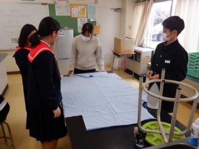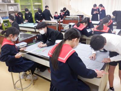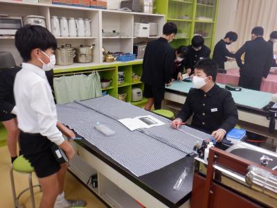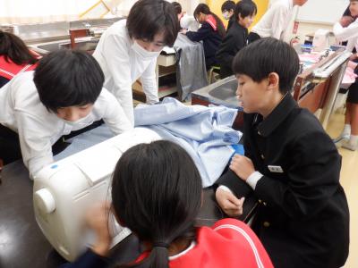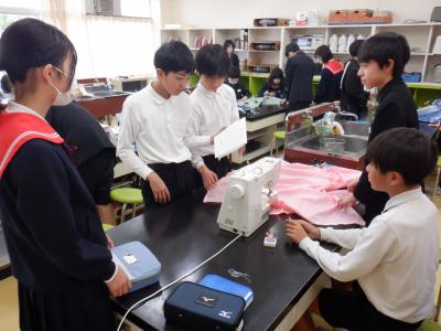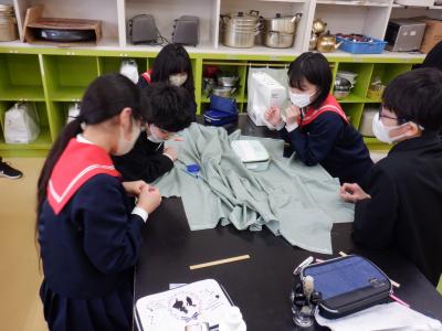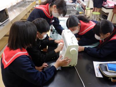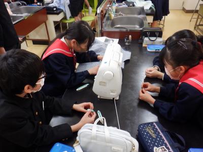 2024年2月15日 19時29分近頃、6年生が家庭室でミシンに向かって、グループで1つのものを作っています。