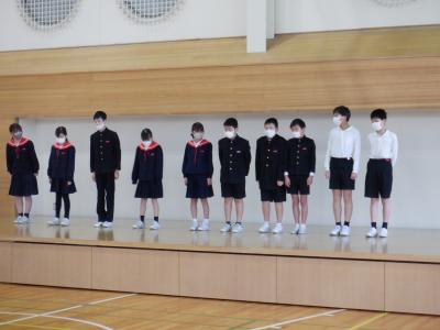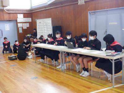 今日は、進行や幕間を担当する子どもたちが、教室での練習後、体育館で通し練習をしました。