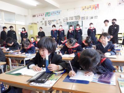 「ノートの字がきれい!」「説明が上手」など、6年生は目を細めながら1年生の学習の様子に感心していました。