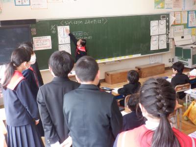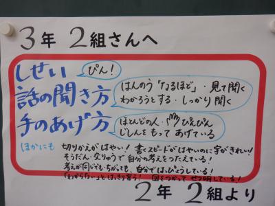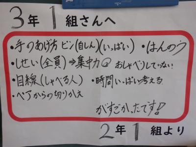 参観後には、相手クラスに素敵だったところを紙に書いて伝えています。これも嬉しい「認め合い」ですね!