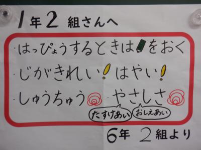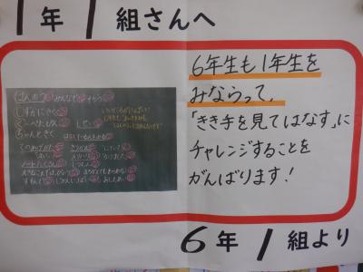 16日(金)、6年2組が1年2組へ子ども授業参観に行きました。