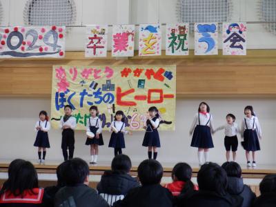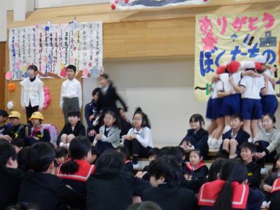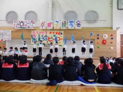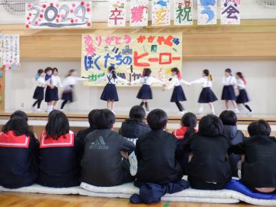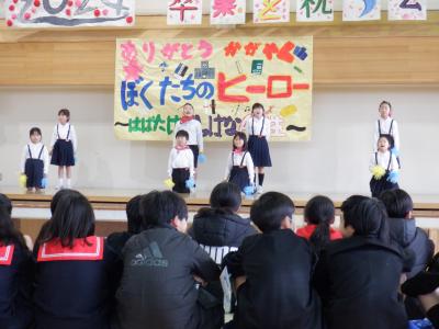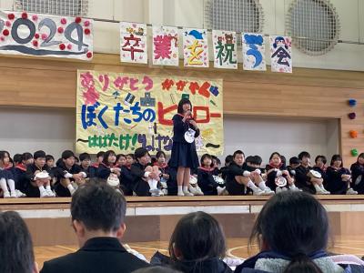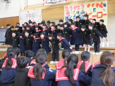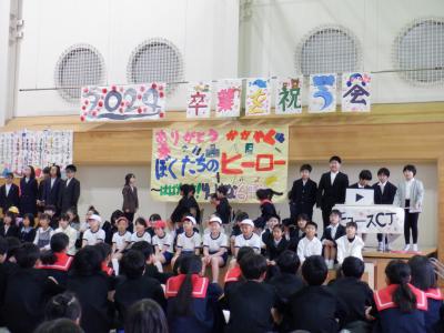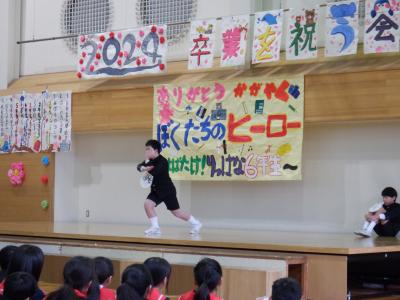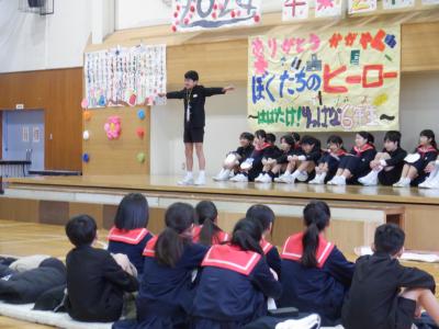 5年生が中心となって企画・運営し、”ぼくたちのヒーロー”6年生に向けて、感謝の思いを出しもので表現しました。