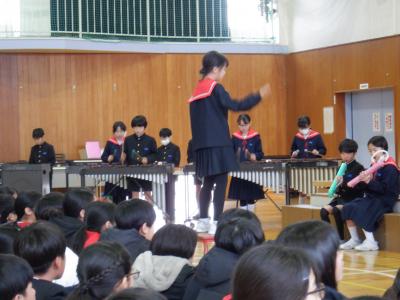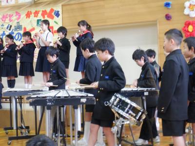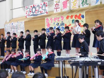 6年生は、運動会のフラッグ演技で使用した「Magic」という曲を合奏で披露してくれました。