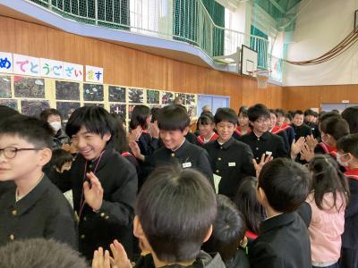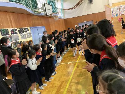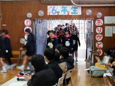 見送られる6年生にも笑顔あふれ、今日の卒業を祝う会が楽しい時間だったことが表れていました。