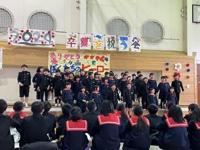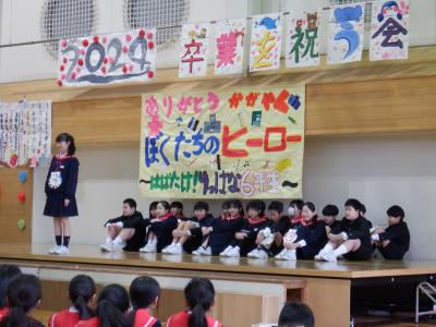 スローガンは、「ありがとう かがやく ぼくたちの ヒーロー ~はばたけ!りっぱな6年生~」です。
