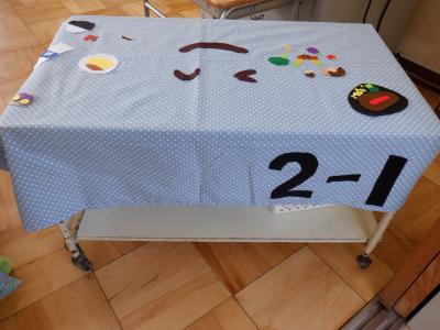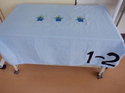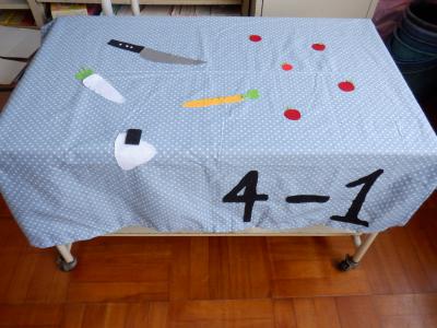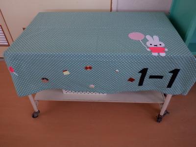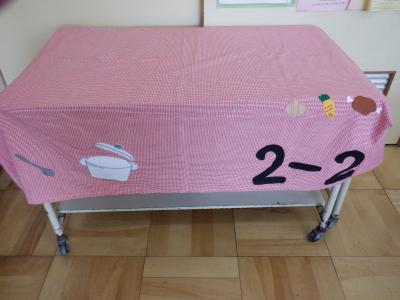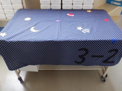 クラスによって布地も模様も様々で、世界に1つだけの配膳台カバーです。