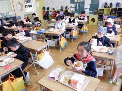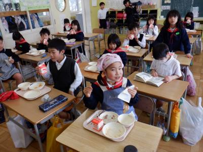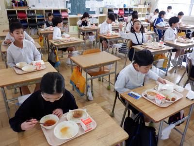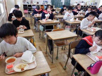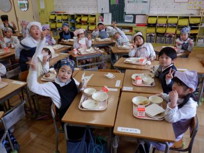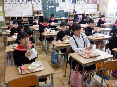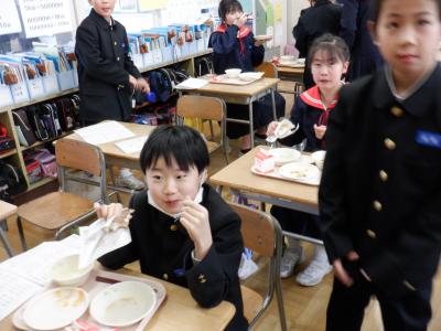 今回は、6年生の卒業をお祝いして、調理員さんたちが「2色揚げパン」を作ってくれました。