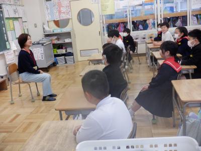 今日は学年合同で、広いスペースで読み聞かせを聞いた学年もありました。