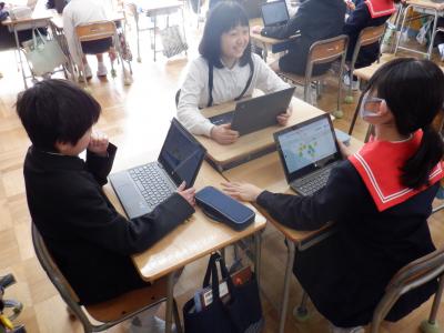 グループ単位で同じ画面を見ながら話し合うことで、新たな気付きがあったり思考が整理されたりしたようです。