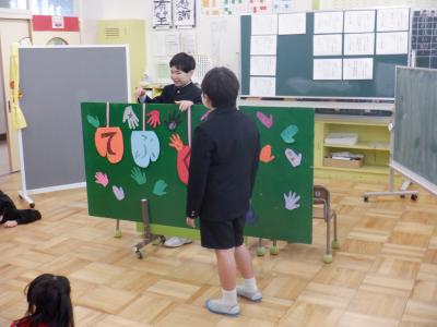 最後に、みんなで楽しみながら学習しようと、「てぶくろ」の音読劇を楽しみました。