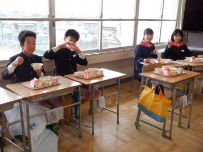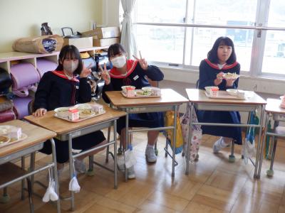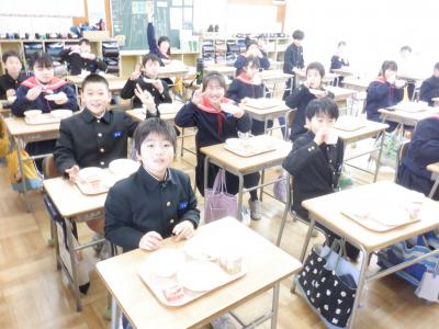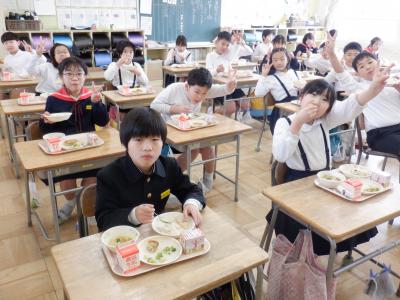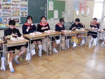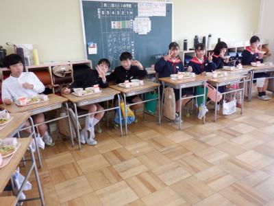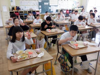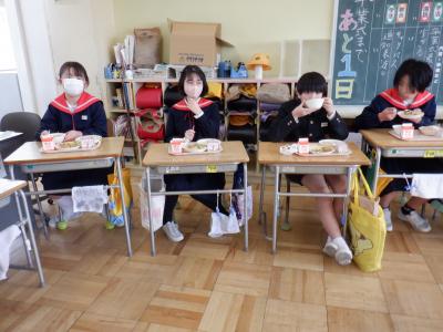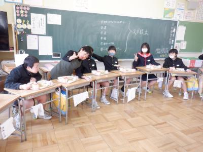 6年生の教室では、どちらのクラスも大きな円になり、お互いの顔を見ながら食べました。