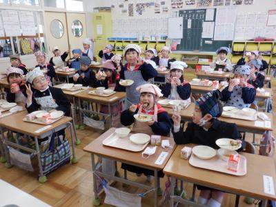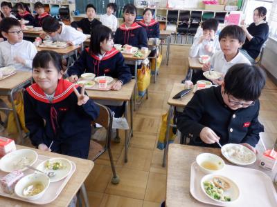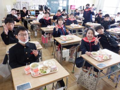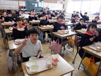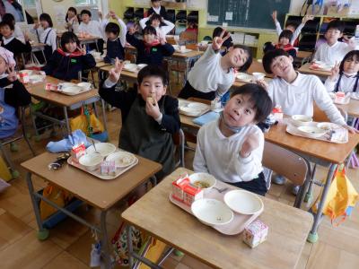 明日は、いよいよ卒業式。今日は、6年生にとって小学校最後の給食の日となり、卒業お祝い献立です。