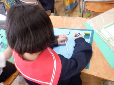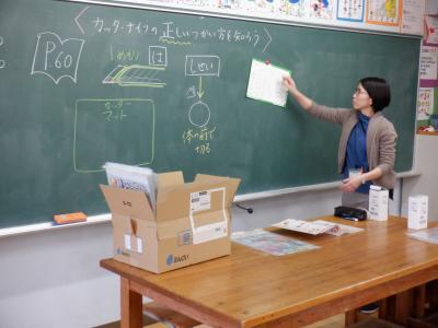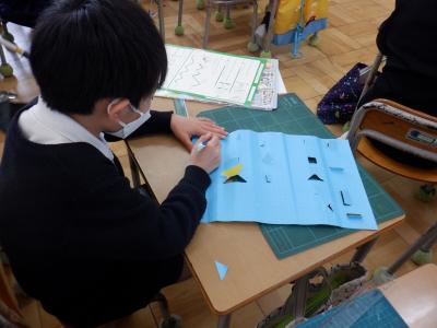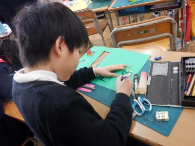 初めてカッターを使う教材で、慎重に取り扱いながら学習を進めています。