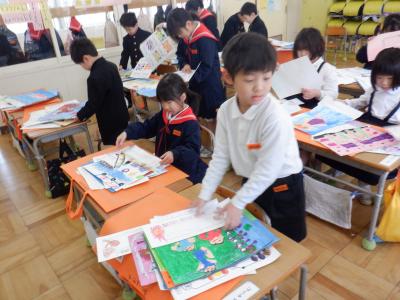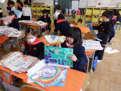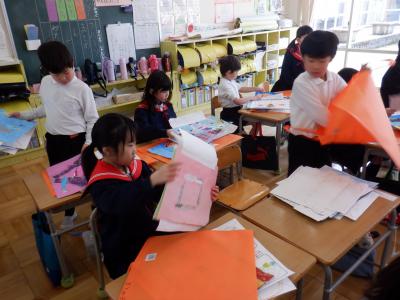 2024年3月19日 18時10分この日、1年生は、新1年生を気持ちよく迎えるために、教室を整頓したり、掲示物を作ったりしていました。