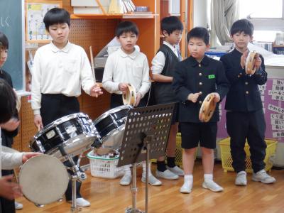 2年1組は、最後の音楽の授業。これまで歌ったり演奏したりした曲を振り返り、みんなで合奏を楽しみました。
